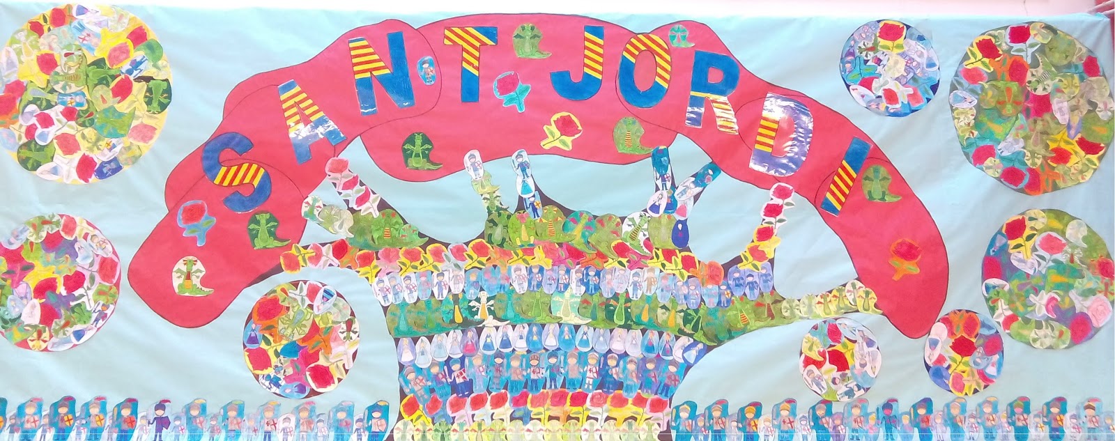 El divendres dia 22 vam celebrar a l'escola la festivitat de Sant Jordi amb nombroses activitats (exposició de treballs a l'entrada de l'escola, venda de llibres, confecció i venda de dolces roses solidàries, representació de la llegenda de Sant Jordi en anglès per totes les classes i altres actuacions amb la intervenció de tot l'alumnat. També es van organitzar dos tradicionals concursos: els Jocs florals en el qual tot l'alumnat va participar, bé creant un poema o escrivint una narració i el concurs de fotografia per a famílies que aquest any portava per lema: Llegim junts.