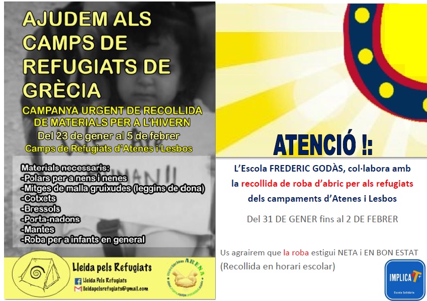 part de l'alcalde al Bloc d'Activitats de l'Escola, teatre i projectes a Educació Infantil, fotografies dels Espais de Joc a Cicle Inicial i sortides a l'Auditori i al Museu de Lleida i la primera participació al projecte Patis Actius a Cicle Mitjà i la Xerrada sobre els refugiats i el Taller sobre el Bullying al Cicle Superior.